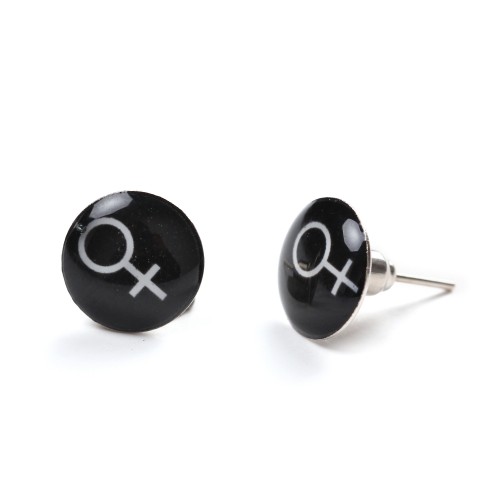 Female Venus Symbol Stainless Steel Black Unisex Stud Earrings